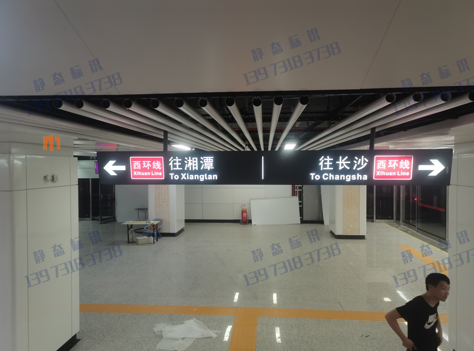 下圖是湖南愛奧尼標識工程有限公司為西環線8座地鐵站的其中6座站所做的導向標識制作安裝現場情況。湖南愛奧尼標識工程有限公司是一家專業的鐵路標識,導向標識,高鐵站標識,站房標識,靜態標識設計制作安裝服務公司,擁有15年標識設計經驗,100多名專業生產團隊,獲得ISO9001質量管理體系認證等數10項榮譽資質證書,電話:13973183738